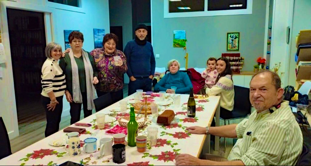 Nos hemos encontrado en la asociación, el taller de pintura con su merienda y al día siguiente nos hemos unidos «los demás» para cerrar el año, con la corona navideña, Lástima que el mal tiempo del día y la gripe no nos ha permitido reunirnos a todos y todas. Y digo yo, si nos proponemos otro encuentro en primavera…